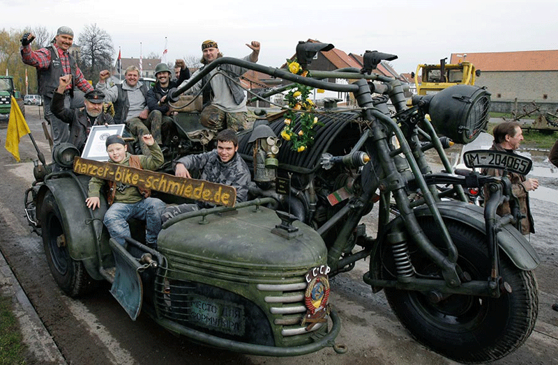 Мотоцикл-монстр носит название Panzerbike. Его энтузиастам-байкерам удалось собрать лишь за один год. Это произошло в городке Гарц (Нижняя Саксония).