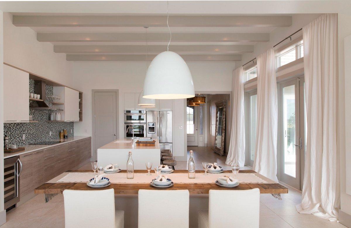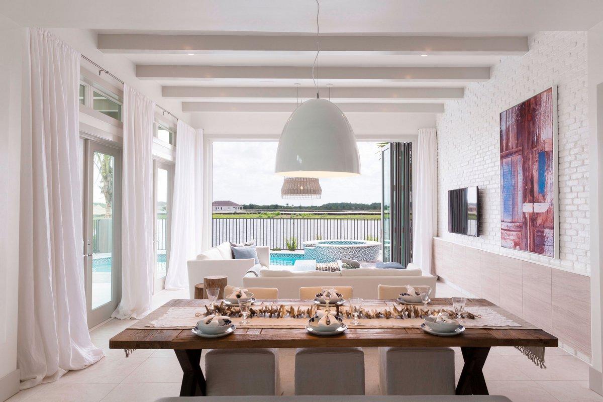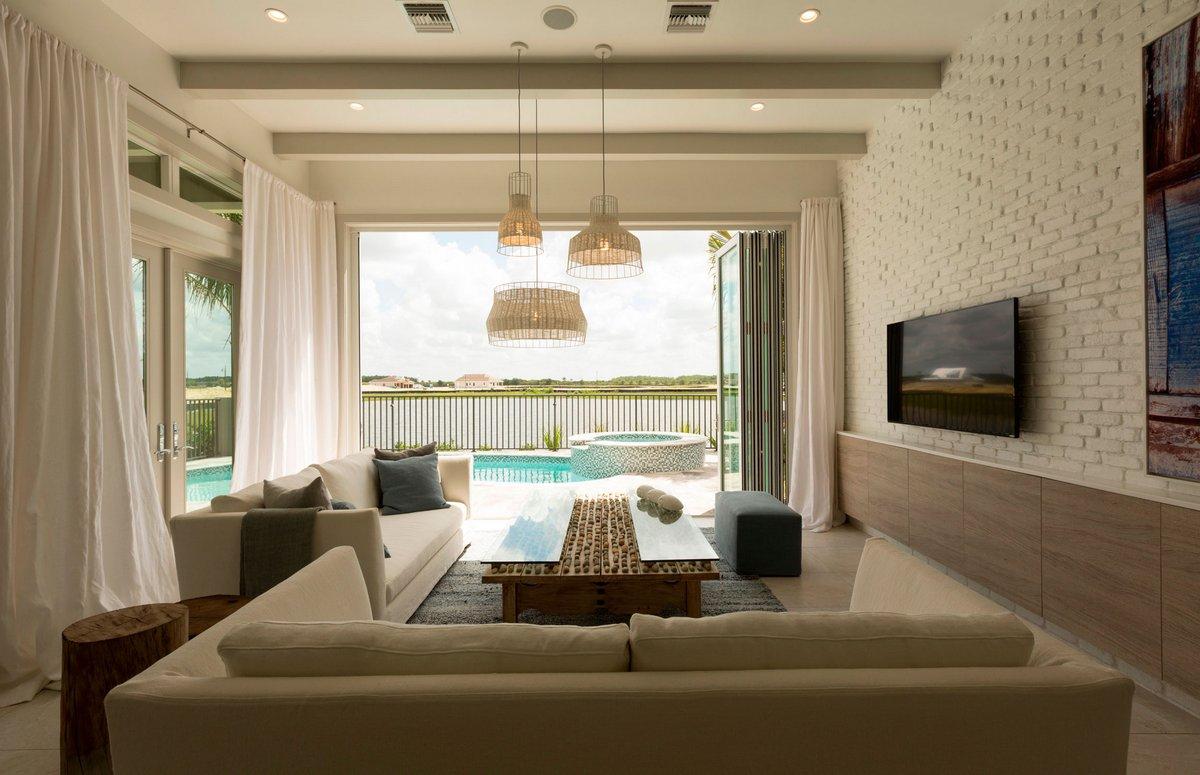 Цветовая палитра в приятных кремовых оттенках создает приятную атмосферу домашнего уюта в любое время суток. Зона кухни, столовой и гостиной объединены в единое пространство с красивым видом на залив Нейплс.