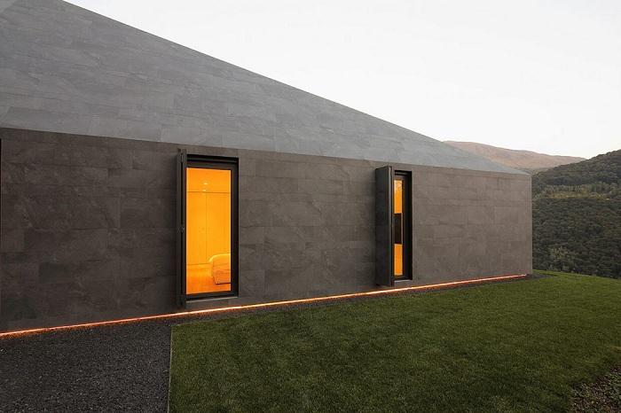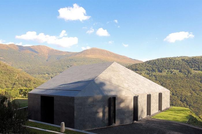 Архитектурная практика JM Architecture спроектировала и реализовала строительство частного дома (Montebar Villa) в Швейцарских Альпах. Остроконечная форма виллы продиктована очертаниями горных вершин, виднеющихся вдали. Издалека особняк выглядит как монолитное строение без окон и без дверей. Сразу даже и не поймешь, что это жилая структура. На самом же деле, при желании хозяев, с одной стороны дома могут открываться ставни на окнах, а с другой – целый фасад, откуда виден потрясающий идиллический пейзаж Альпийских гор.
