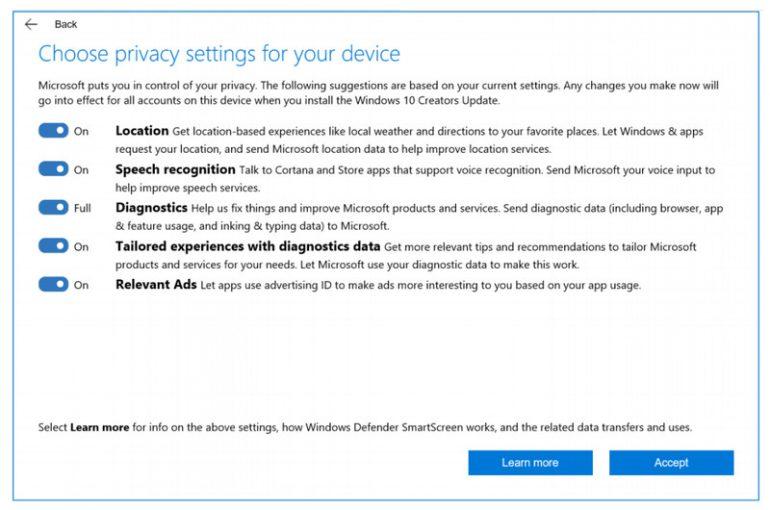 Соответствующий инструмент для более полного управления собираемыми в Windows 10 данными будет представлен вместе с обновлением Creators Update, которое будет представлено на следующей неделе.