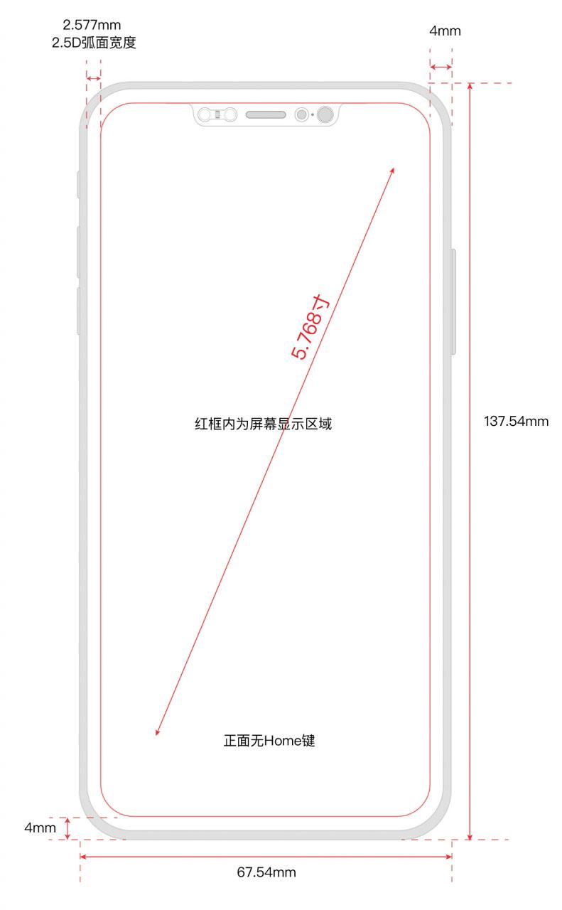 «Утечка» также демонстрирует некоторые характеристики iPhone 8: размер, диагональ экрана и набор сенсоров на корпусе. Как видно по чертежу, габариты аппарата составляют 137,54 х 67,54 мм. Для сравнения, iPhone 7 с заметно меньшим дисплеем имеет габариты 138,3 х 67,1 мм. Согласно приводимым данным, диагональ экрана iPhone 8 составляет 5,768 мм.
