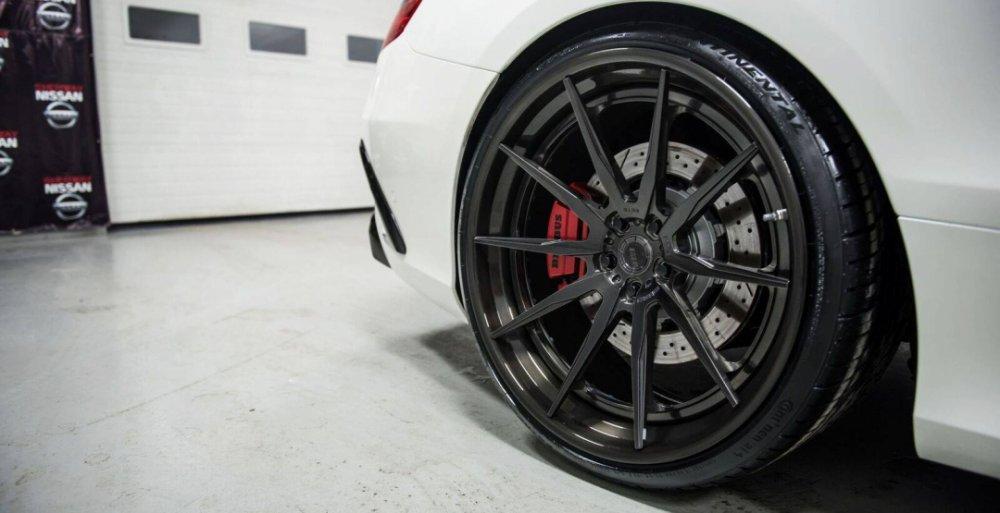 Автомобиль укомплектовали уникальными колесными дисками с размерностью в 22 дюйма, которые обзавелись специальным "дымчатым" покрытием. Кузов Mercedes-AMG S63 Coupe by Brabus получил белый оттенок, контраст котрого создается при помощи обвеса из ателье Brabus.