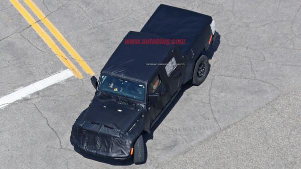 Новый Jeep Wrangler в кузове пикап в отличие от ранее испытываемого прототипа получил другой грузовой отсек, который стал квадратным и в целом больше гармонирует с чертами экстерьера автомобиля. Тестовый мул скрывается под огромным количеством камуфляжной плёнки, однако экспертам удалось рассмотреть расширители колёсных арок и детали защитного обвеса из пластика.