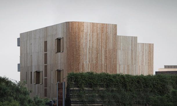 Однако помимо живописных видов архитекторам досталась еще и близость к оживленной кольцевой дороге. Они решили проблему шума отделкой фасада прочными деревянными панелями, которые и сделали дом похожим на корабль. Защитную функцию также выполняет высокая живая изгородь, окружающая дом.