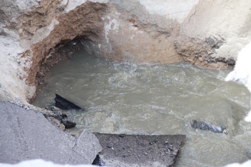 А очевидцы говорят: яма образовалась в районе канализации, аккурат под люком. На место провала выехали дорожники. Они оградили яму шестиметровой глубины лентами и принялись изучать причины ее возникновения. Кроме того, сотрудники дорожной службы перекрыли дорогу в районе улицы Тополева, и в сторону города выстроились большие тянучки.