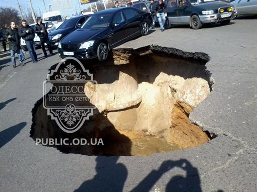 В Одессе посреди улицы образовалась огромная дыра (ФОТО+ВИДЕО)