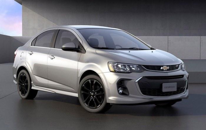 Chevrolet Sonic 2017 года получил обновленный дизайн с новым капотом, фарами и фальшрадиаторной решеткой. Модель сейчас доступна в кузовах седан и хэтчбек. Базовая версия Sonic LS с механической коробкой передач включает в себя стандартные 10 подушек безопасности (больше, чем у других конкурентов), камеру заднего вида, систему контроля тяги и управления шасси, складывающиеся задние сиденья, электрические замки дверей, регулируемый руль, систему помощи при подъеме, мультимедийную систему Chevrolet MyLink, управление аудиосистемой и телефоном с рулевого колеса и многое другое. Машину приводит в действие 4-цилиндровый 1,8-литровый двигатель Ecotec через 5-ступенчатую механическую коробку передач.