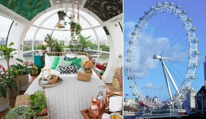 Агентство TripAdvisor Rentals в сотрудничестве с Wayfair превратило одну из кабинок лондонского колеса обозрения в уютную комнату с множеством растений. Вдохновляясь пышной растительностью тропического леса, дизайнеры украсили живыми растениями буквально каждый сантиметр капсулы.