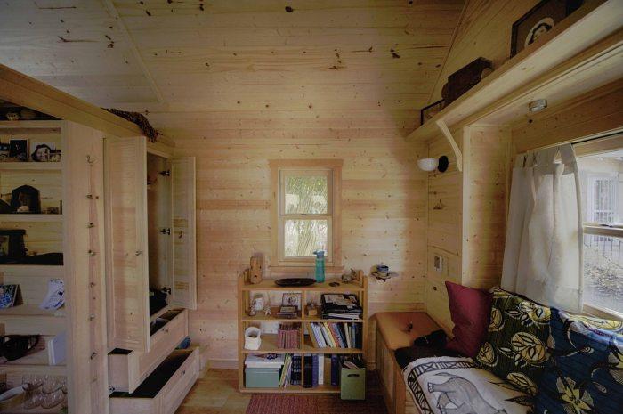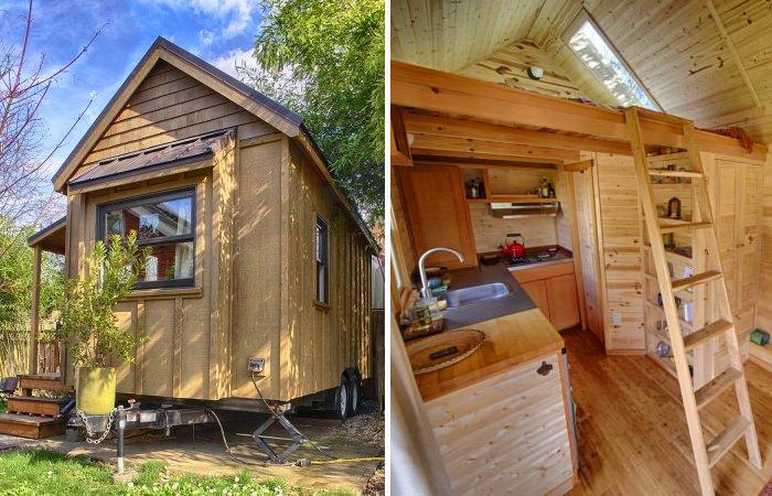Дом на колесах Sweet Pea Tiny House («Сладкий горошек») спроектирован специально для одинокой женщины, которая часто бывает в разъездах. Но она надеется когда-то найти свою вторую половинку, родить ребенка, и это предусмотрено в проекте. Это отличный вариант экономного жилья с собственным стилем. Он также будет хорошо смотреться на небольшом дачном участке. Все что необходимо - это получить инструкцию и собрать постройку. Именно так и сделала его владелица, причем своими силами.