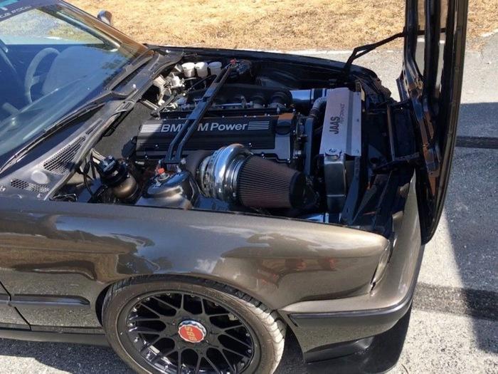 В результате радикального тюнинга были заменены шатуны, поршни и инжекторы, установлена головка блока цилиндров от 3,5-литрового мотора M30B35 и установлена огромных размеров турбина Precision PT8284.