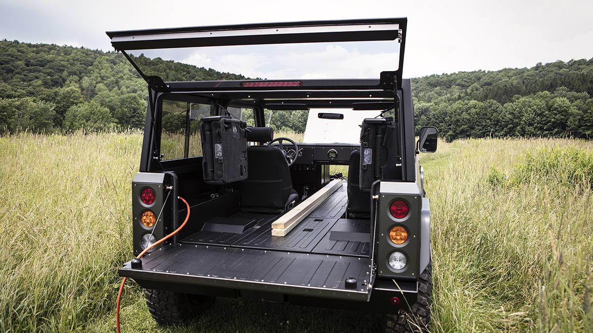 Для этого четырёхместный внедорожник способен трансформироваться из универсала в пикап и обратно. Задние кресла легко снимаются, крыша разбирается, а позади передних кресел устанавливается перегородка со стеклом. В результате в Bollinger можно возить длинные трубы или доски прямо сквозь машину! Но даже без этого в двухместном варианте салона автомобиль обладает суммарным объёмом багажников в 2690 литров.