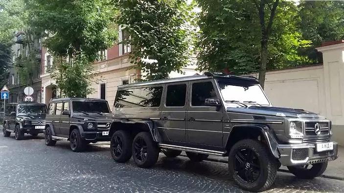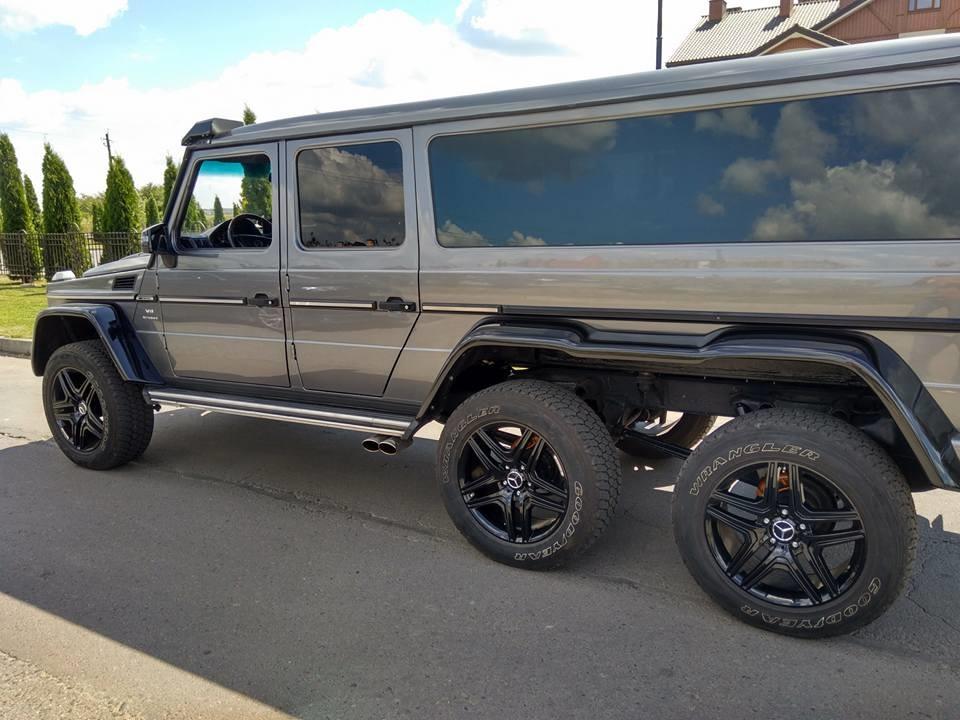 Уникальность этого экземпляра заключается в том, что это явно не серийный вариант автомобиля. Хотя, напомним, встречается в Украине заводской 6-колесный Гелендваген. Как видно, автомобиль имеет солидно удлиненную колесную базу.