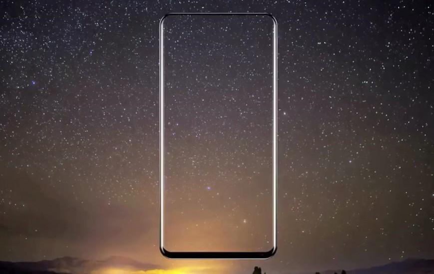 Слева, справа и сверху дисплея рамок нет вообще, а в нижнюю встроена фронтальная камера. Дисплея смартфона закруглен по углам, как у Galaxy S8 и LG G6. На нижней нижнем торце расположены стереодинамики, а между ними — порт USB Type-C.