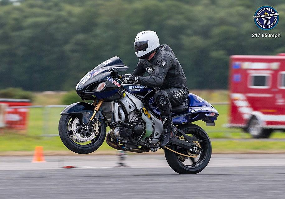 Рекорд был установлен на взлетной полосе военной базы в Северном Йоркшире в рамках ежегодного мирового чемпионата по скоростной езде на заднем колесе мотоцикла.
