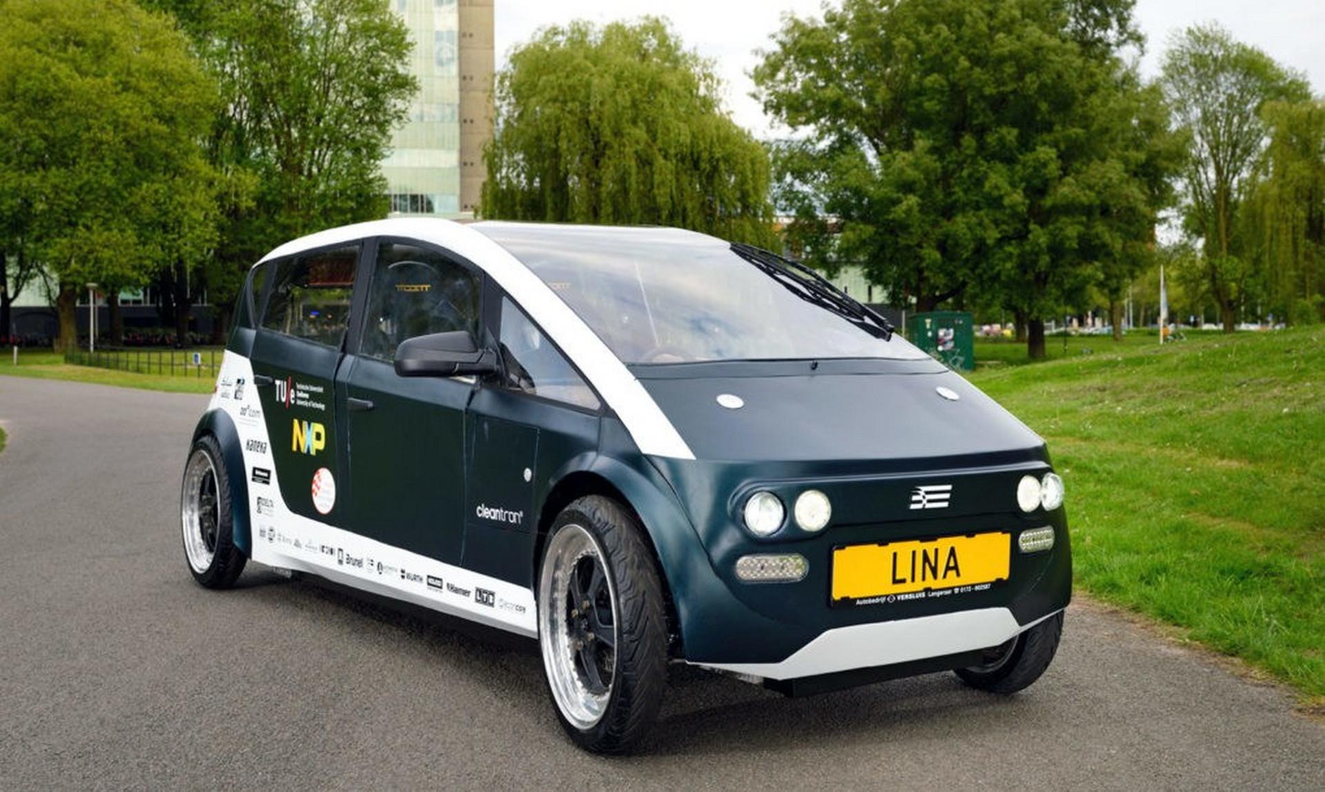 Она может взять четверых пассажиров, а ее масса всего 300 килограмм. В основе машины биопластик и биокомпазит и они состоят из натуральных материалов . А вот кузов сделали из льна.