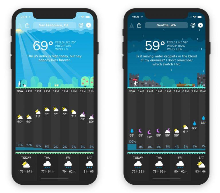 Тем не менее нашлись и те, кто задействует весь дисплей. Разработчик Carrot Weather продемонстрировал свой вариант.