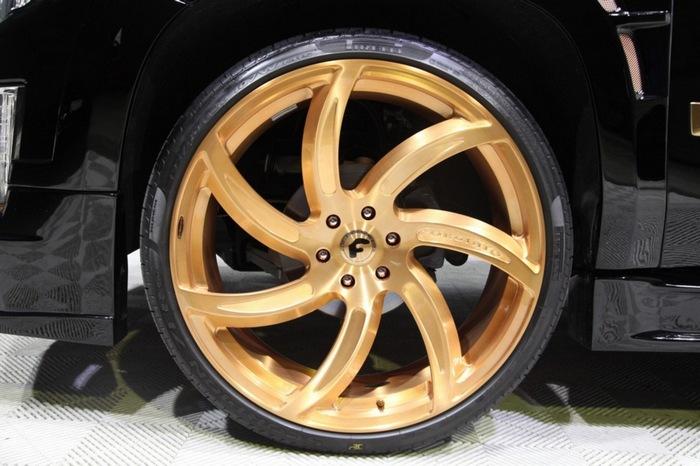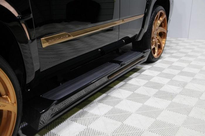 Кроме обвеса Next Nation, этот уникальный внедорожник может похвастаться электромагнитной подвеской, аудио-системой Bose, медиа-комплексом с дополнительными мониторами и «золотыми» 26-дюймовыми дисками Forgiato AZIONI-M.