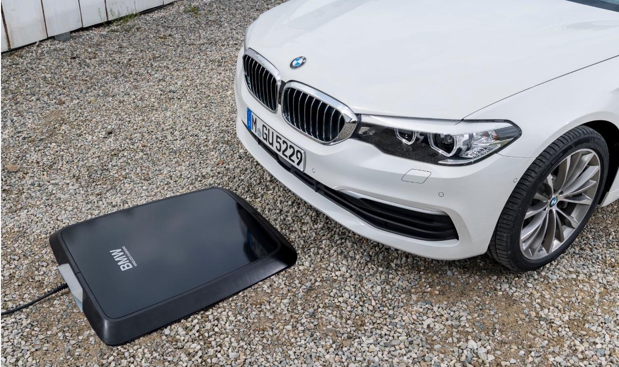 Это беспроводная зарядка для BMW 530e iPerformance. Принцип ее прост: она состоит из площадки или «базы», на которую авто наезжает, так чтобы она оказалось под днищем.