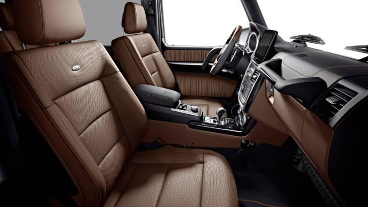 Зато обычные Mercedes G-Class отличаются более роскошной отделкой салона с деревянным полом, а также получили ТВ-тюнер, обогрев лобового стекла и аудиосистему Harman Kardon.