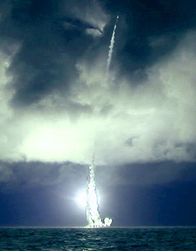 Московский институт теплотехники рассекретил первую фотографию залпового запуска межконтинентальных баллистических ракет Р-30 «Булава-30», произведенного с борта стратегической атомной подводной лодки «Юрий Долгорукий» проекта 955 «Борей» 23 декабря 2011 года.