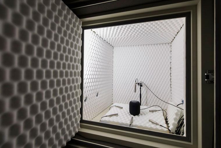 Во время тестирования HomePod особо важно было полностью оградить гаджет от внешних шумов. HomePod излучает звук на 360 градусов, и в этом ее уникальность. Более того, Apple хотела сделать колонку такой, чтобы ее абсолютно не было слышно при работе в пассивном режиме.