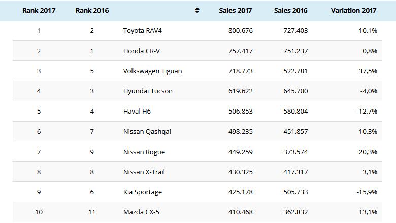 Эксперты опубликовали рейтинг самых продаваемых кроссоверов в мире (ФОТО)