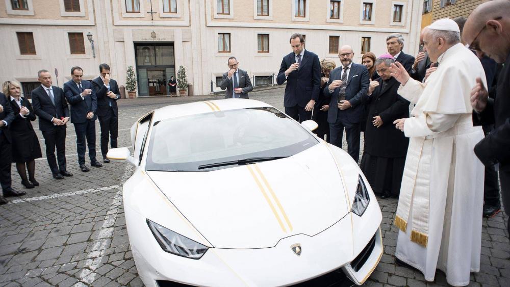 Подарен суперкар был не просто так, а для вполне благих целей - продать его на аукционе и направить вырученные средства на благотворительность. Именно в минувшие выходные в Монако прошел аукцион Sotheby's, на котором Lamborghini Huracan Папы Римского был продан за 715 000 евро (816 575 долларов).