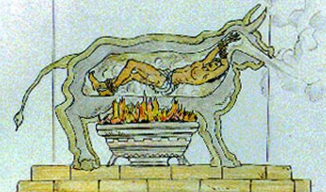 Из всех изобретателей в этом списке он, пожалуй, больше всего заслуживает смерти от своего изобретения. Перилл работал медником и создал устройство под названием «Медный бык» для мучительной казни провинившихся. Многие уже догадались, что данный бык сделан из меди. В нем запирали заключенных и жарили до смерти при помощи огня, который разводили под брюхом статуи. Конструкция была перфорирована в области ноздрей, откуда исходил дым, и продумана таким образом, что было слышно стоны жертв, которые были похожи на рев быка. Перилл представил свое изобретение тирану Агридженто Фалариду, после чего был сам помещен внутрь быка. К сожалению, история не дает определенного ответа относительно причины смерти Перилла. Он либо сгорел в быке, либо был сброшен с обрыва. Так или иначе, данное изобретение его погубило.