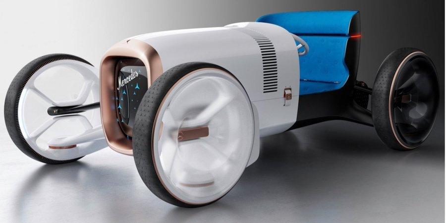 Двухместный автомобиль не имеет колесных арок, как и его 120-летний предшественник, а дизайн кузова выполнен в двух цветах — белом и черном. Внутри машины можно увидеть только руль, педали и фирменные часы Mercedes, без каких-либо современных дисплеев и продвинутых элементов управления.