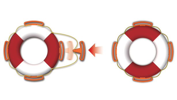 Все мы знаем, что представляет собой спасательный круг. Это круг, который привязан к веревке. Сам круг спасатели выбрасывают в воду. а другим концом веревки держат его. Когда жертва схватилась за круг – спасатель перетягивает ее к себе.