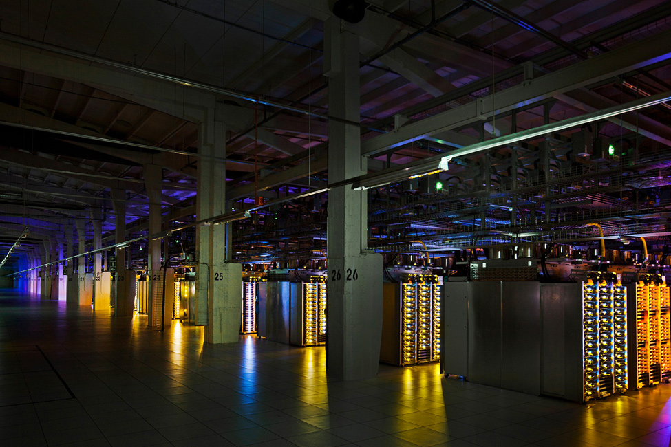 Центр обработки данных Gооgle — это дом, в котором «проживает» Интернет. Длинные ряды серверов и переплетающиеся яркие кабели охраняют в строгом порядке.