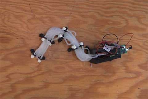 Инженеры технологического института, Массачусетс, разработали пневматического гибкого робота, который передвигается подобно змее за счет изгибов своего «тела». Описание устройства опубликовано в Bioinspiration & Biomimetics, а кратко об этом необычном роботе пишется в New Scientist.