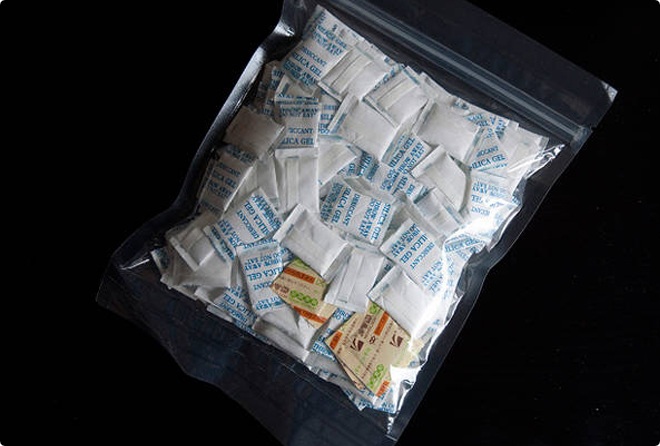 3. Оставьте телефон на бумажных полотенцах на 24 часа, а рядом положите пакетик-другой с силикагелем — тот, который кладут в коробки с обувью. Вы все прекрасно о них знаете. На них всегда красуется надпись “не есть!” Это сообщение никак не поможет нам в данной ситуации, но пакетики, действительно, очень полезны. Как вы наверняка знаете, они предназначены для поглощения влаги. Они являются отличным решением для «откачки» воды из вашего промокшего устройства. То, что вам нужно сделать – это заполнить пластиковый пакет или пластиковый контейнер пакетиками с силиконовыми шариками, как на картинке выше, а потом положить туда ваш iPhone.
