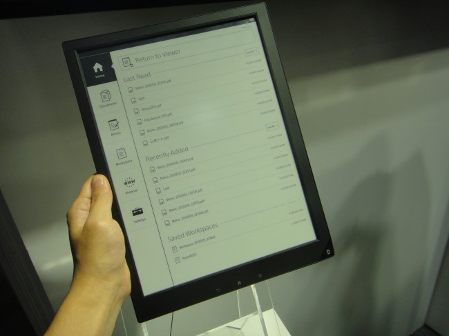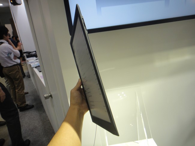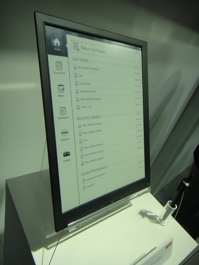 На этой неделе компания Sony представила прототип электронной тетради с нестандартным размером экрана. В отличие от традиционных электронных ридеров, данное цифровое устройство использует стилус и ультратонкий 13,3-дюймовый дисплей размером с бумагу формата A4. Возможности новинки были продемонстрированы на тематической торговой выставке в Японии.