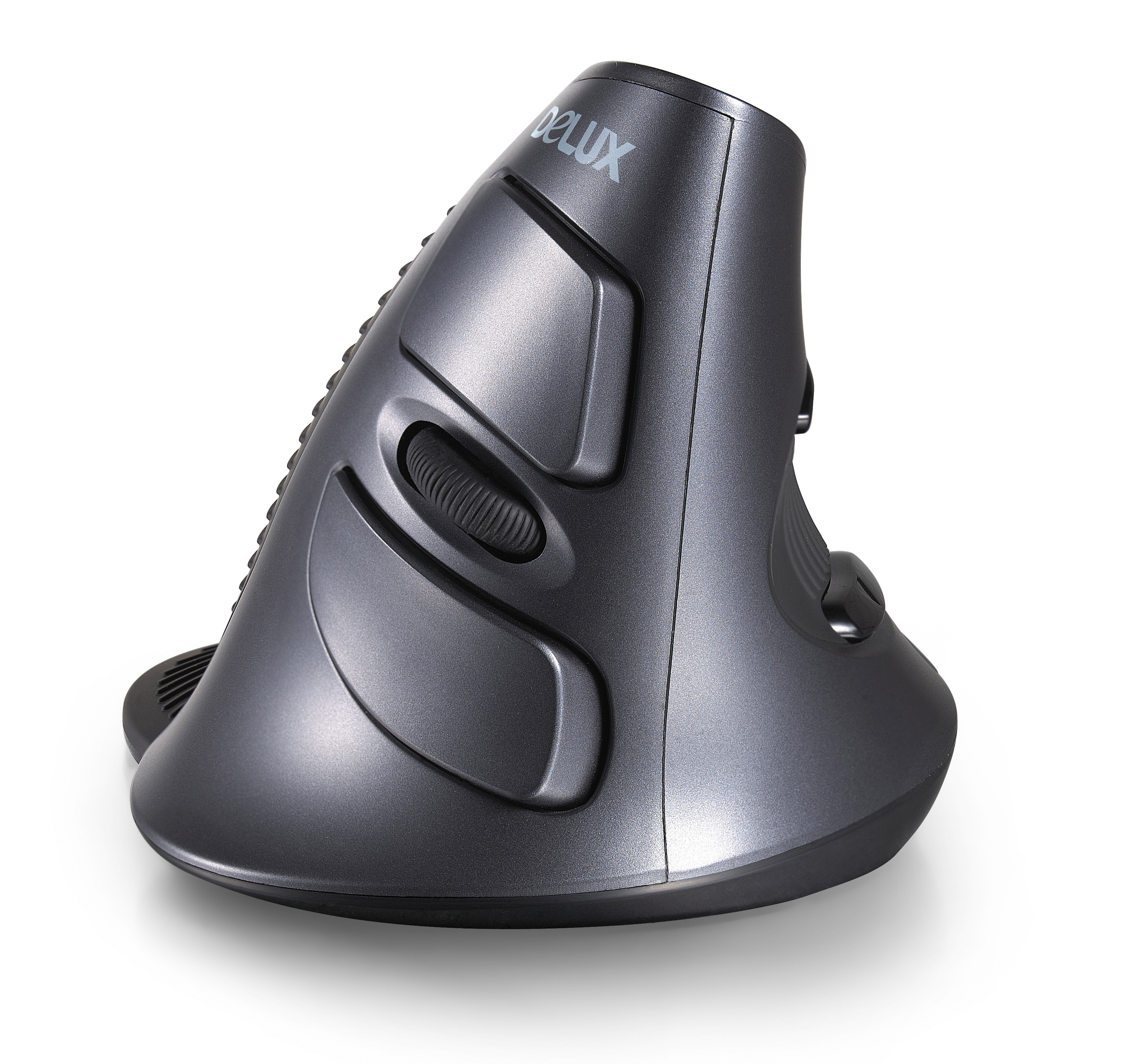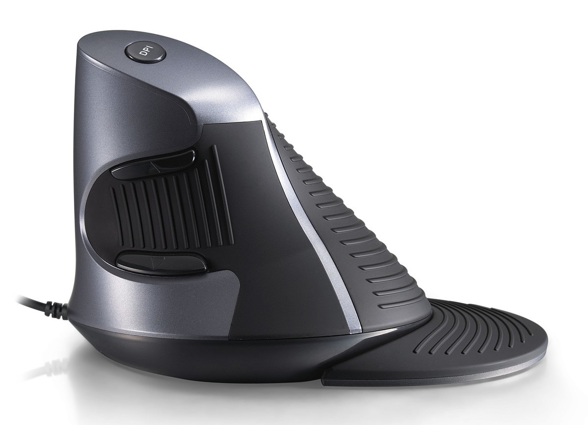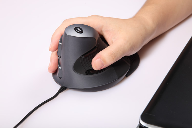 Теоретически вертикальный дизайн мышки понижает риск получения лучeзапястного синдрома. Новейшая беспроводная мышь для компьютера Delux M618GL вынудит своих пользователей правильно ставить кисть при обхвате манипулятора.
