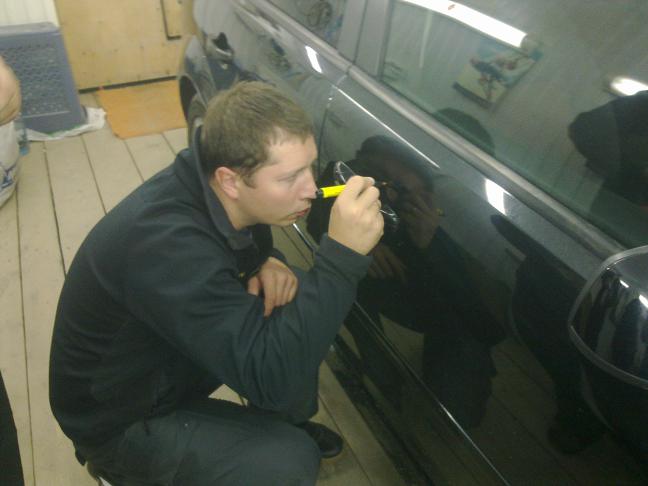 Применение подкрашивающих карандашей. Это комплект для подкрашивания авто, состоящий из баночки с краской, кисточки и лака (не всегда). Как правило, подкрашивающие карандаши используют для более глубоких царапин, нежели "Антицарапин". Удаление царапин на автомобиле с помощью этого метода происходит таким образом: слой краски наносится на поврежденное место (иногда рекомендуют использовать зубочистку), затем она высыхает и наносится лак. Поврежденное место полируется и, для большего блеска и долговечности покрытия, повторяется процедура с жидким воском.