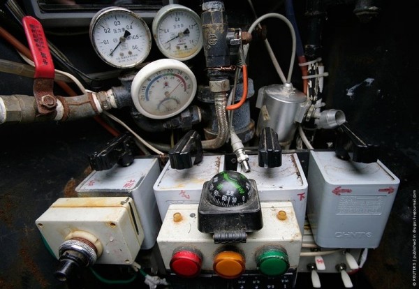 Построенная из железных бочек и разного хлама, купленного на рынке, субмарина совсем как настоящая. У нее даже есть перископ, приборы, электромотор и два гребных винта.