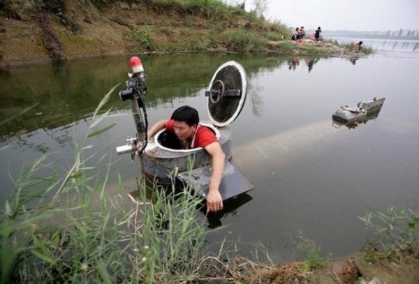 Житель пригорода Пекина Тао Сяньли, наверное, в детстве очень любил читать романы Жюля Верна. Возможно именно этим объясняется его увлечение подводными кораблями. И вот недавно он самостоятельно сконструировал и изготовил подводную лодку.