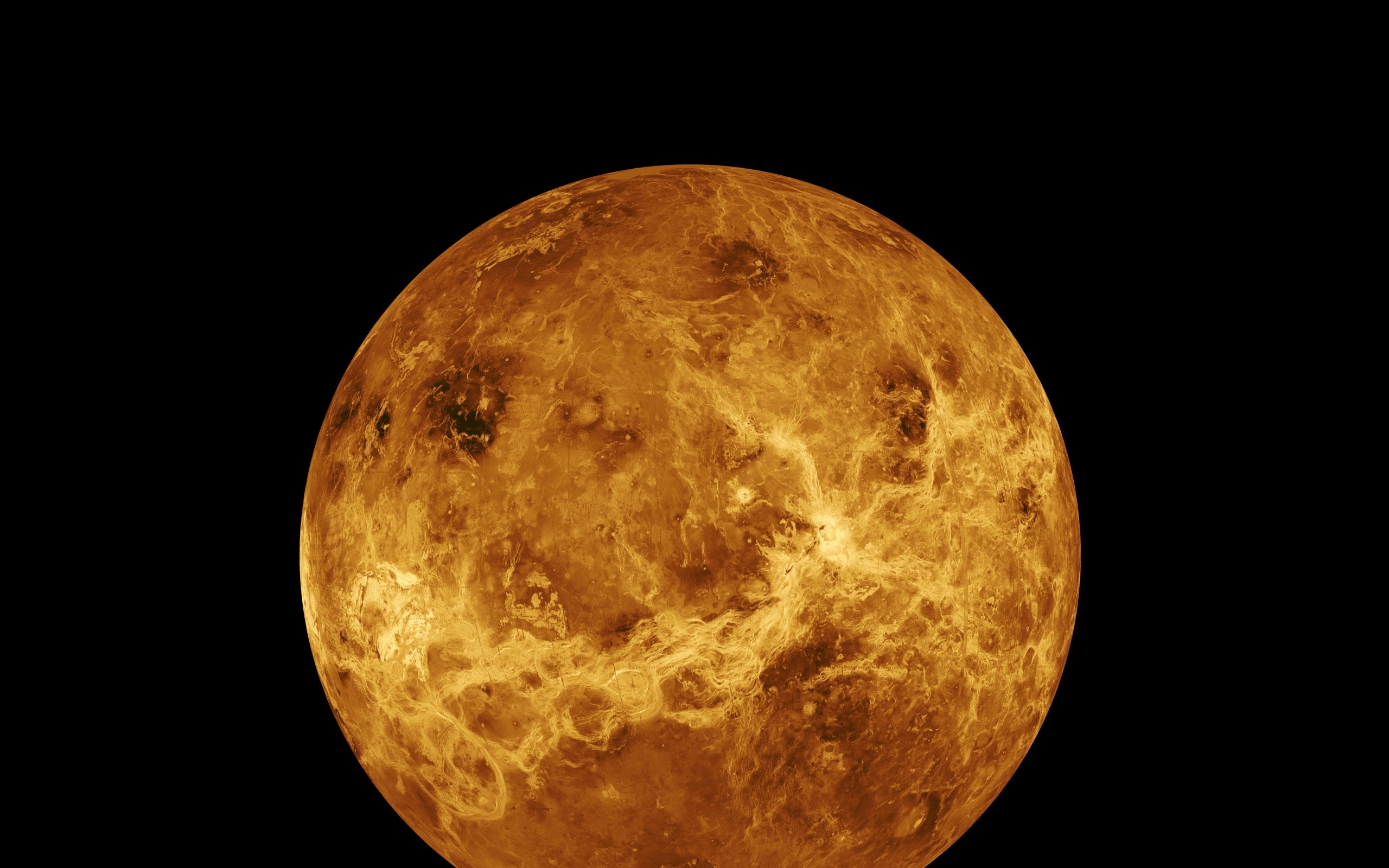 Будучи по размерам близкой к Земле, Венера покрыта очень плотной ядовитой атмосферой, богатой углекислым газом. Поверхность планеты полностью укрыта покрывалом из мягких желтоватых облаков. Только ультрафиолетовые волны (и в меньшей степени волны инфракрасного диапазона) проникают сквозь облака, да и то теряются в них из-за неизвестного поглотителя ультрафиолета в толчее облаков. Отслеживая движения этих облаков, наблюдатели смогли измерить суперураганные ветры, которые кружат над поверхностью планеты, примерно на 70-километровой высоте над знойными вулканическими равнинами.