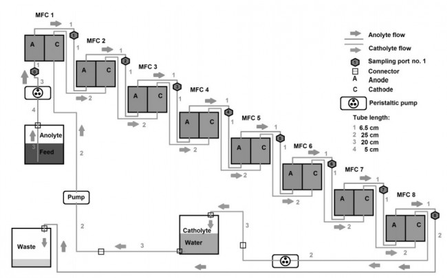 Судя по предоставленным данным, в MFC используется активный ил, который в основном применяется для очистки сточных вод. Для стимулирования роста проводящих энергию микробов (Geobacter sulfurreducens) ученые использовали триптон и дрожжи.