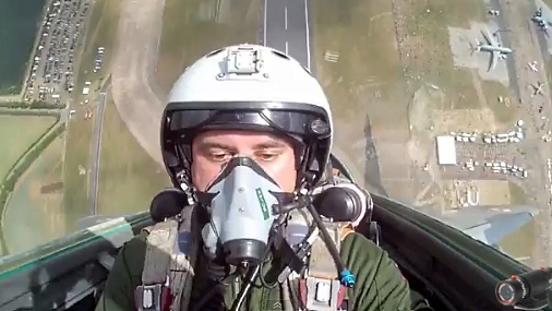 За штурвалом МиГ-29 сидел польский пилот Адриан Роек, сообщает в описании к видео на YouTube. Благодаря высокому качеству, в ролике можно разглядеть и летчика, и его амуницию, и английские холмы, остающиеся за его спиной. Автор ролика отмечает, что таким образом полет не снимали ни разу.