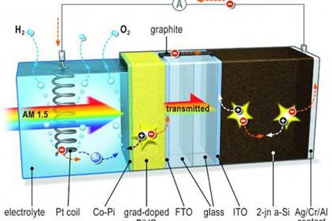 В качестве фотоэлемента в устройстве используется обычный аморфный кремний. Вырабатывающиеся в нем заряды переносятся на два электрода: на платиновом катоде в процессе гидролиза воды образуется водород, на аноде из оксида висмута (BiVO4) генерируется кислород. При этом кремний фотоэлемента отделен от места гидролиза и защищен от действия активных форм кислорода. Кроме того, оксидный анод в устройстве покрыт тонким защитным слоем.