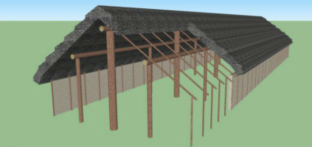 Учёные были немало удивлены сохранностью первоначальной деревянной постройки — "залов живых": несмотря на пожар и время, сохранились некоторые соединительные конструкции и ямы для поддерживающих столбов.