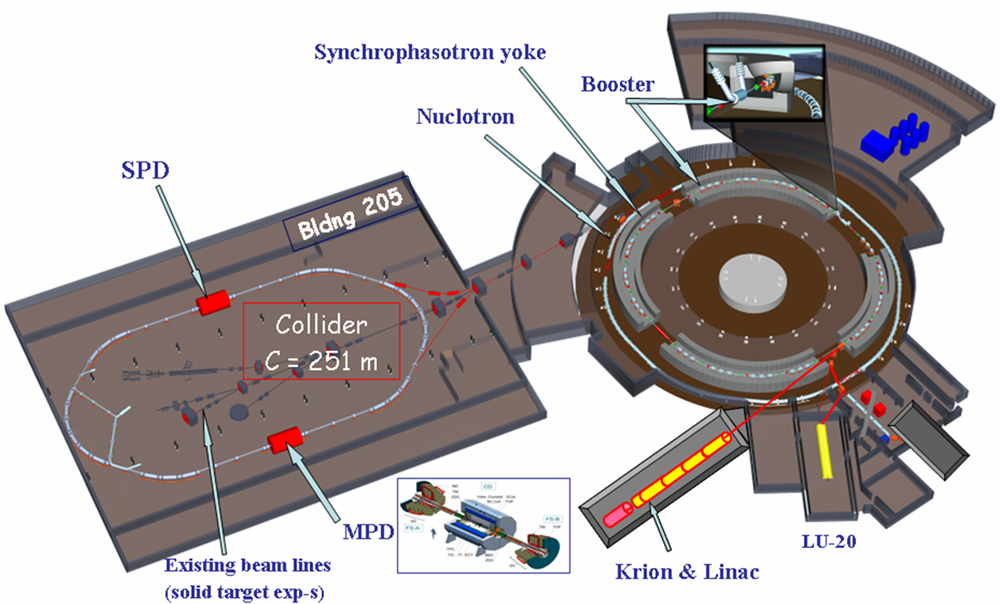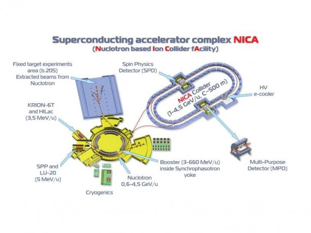 Коллайдер NICA (Nuclotron-based Ion Collider fAcility) создается на базе действующей установки — сверхпроводящего ускорителя Нуклотрон, запущенного в ОИЯИ в 1993 году. Дубненский коллайдер будет изучать переход ядерной материи при экстремальных условиях в новое состояние, называемое кварк-глюонной материей. В ускорителе будут сталкиваться пучки ядер золота, разогнанные навстречу друг другу до энергий 5,5 гигаэлектронвольт на нуклон.