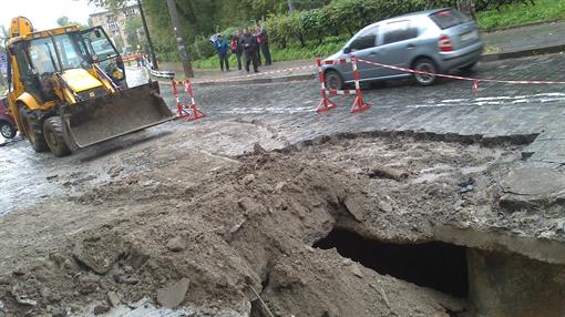 Киевляне продолжают страдать от проливных дождей. В центре столицы провалился асфальт.