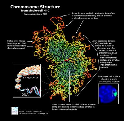 Научным сотрудникам Бабрахамского института (Великобритания) под руководством доктора Питера Фрейзера впервые удалось создать истинный трехмерный портрет хромосомы. Ученые говорят, что в результате научного исследования они выяснили, что мнение людей о том, что хромосомы имеют X-образную форму на самом деле является ошибочным.