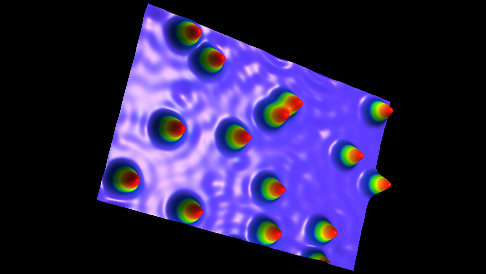 На изображении выше показан сканирующий туннельный микроскоп, уловивший одиночные атомы гольмия на платиновой подложке. Это первый рабочий пример неуловимого одноатомного бита. Спасибо ученым из KIT.