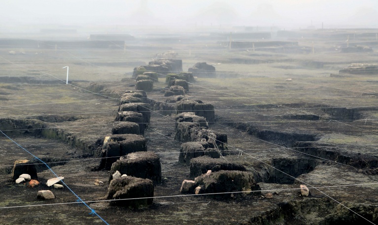 На участке раскопок, имевшем площадь 7,8 гектаров, работают 170 ученых, которые нашли уже 30 000 керамических осколков и разных предметов быта. Кроме того, исследователи нашли останки жителей деревни.