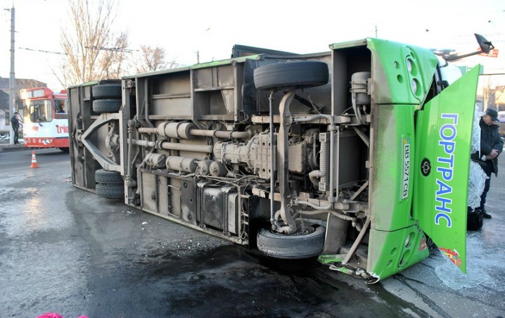 "23 декабря 2013 года примерно в 7:30 в городе Луганске в районе кольца Гаевого произошло опрокидывание маршрутного такси "Богдан", следовавшего по маршруту №167. По предварительной информации, водитель не выбрал на спуске безопасной скорости, не справился с управлением, задел бордюр, электроопору, произошло опрокидывание автобуса. В автобусе ехало 35 пассажиров, 18 - госпитализированы, из них 2 - в тяжелом состоянии", - говорится в сообщении.
