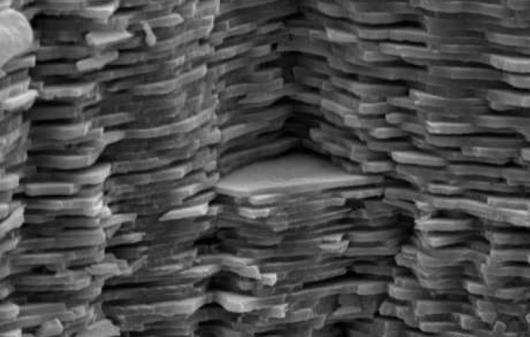 Группа исследователей под руководством профессора Франсуа Бартелата изучила внутреннюю часть слоя перламутра и обнаружила, что его структура состоит из шестиугольных пластинок арагонита, наложенных друг на друга, как кубики LEGO. Ученые обратили внимание на то, что граница между пластинками не ровные, а волнистые, как грани у пазла.